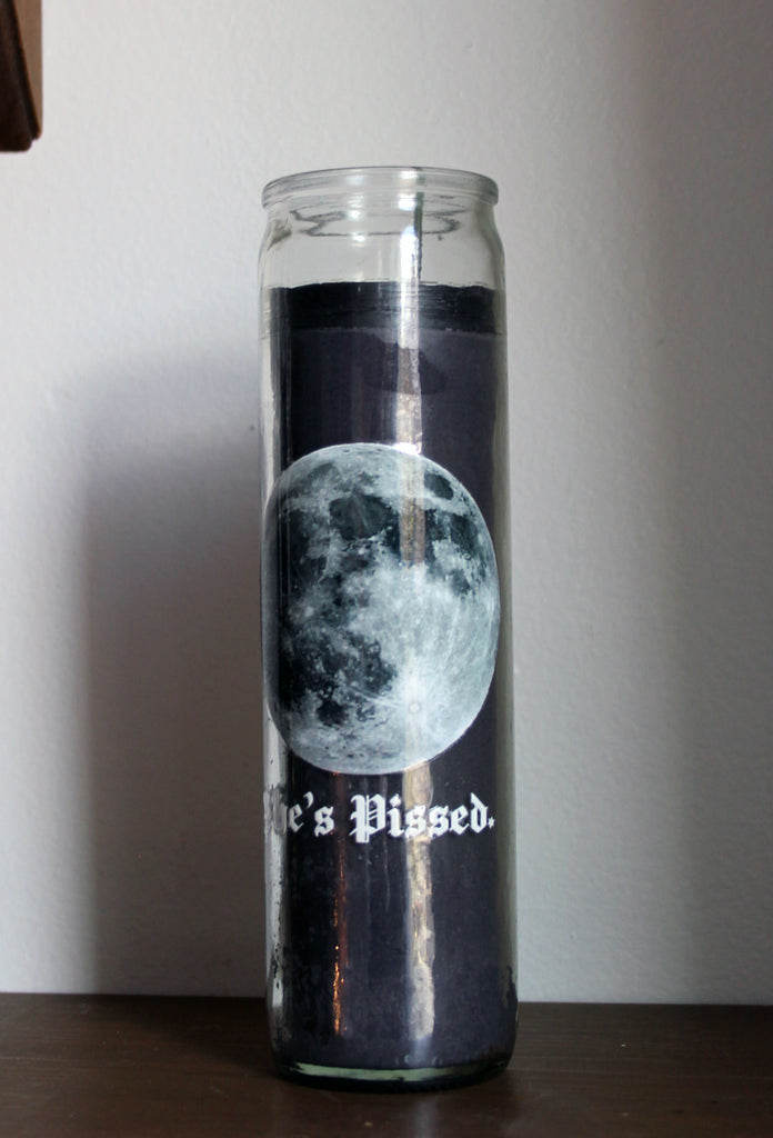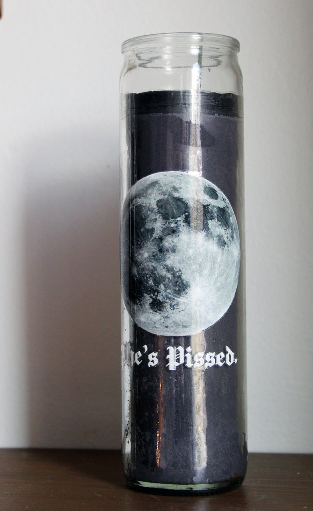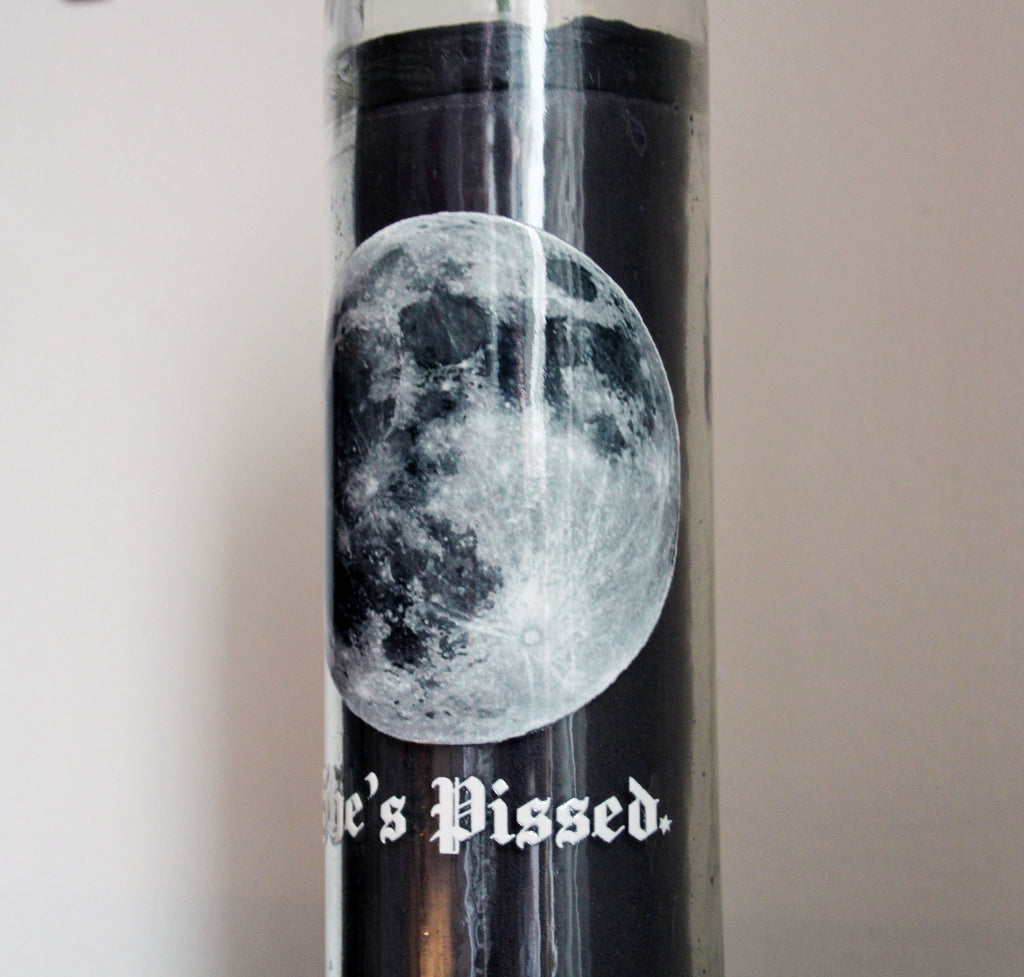The moon is pissed and so are we. Harness her power! Complete with my original design, this candle is great to light whenever the vibes or off or to accompany any sort of cathartic spell work.