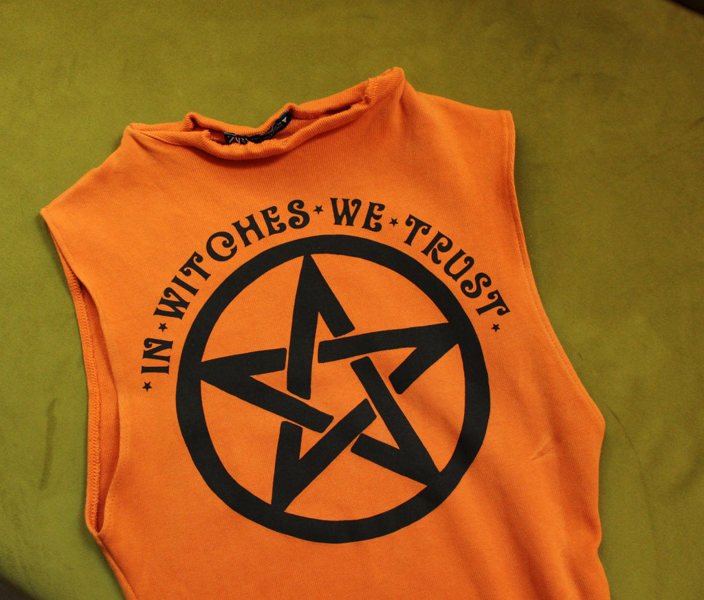 Only one of it's kind! Stretchy ribbed tank in a vibrant orange for fall. Super cute and witchy!