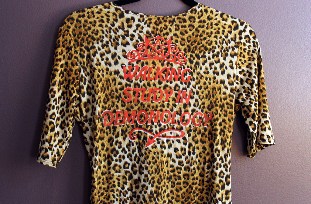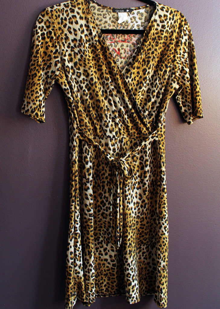 This 90's vintage faux wrap dress features my design from Hole's Celebrity Skin screen printed on the back in red with white detail. Can't get more badass than this! Leopard is my favorite color.