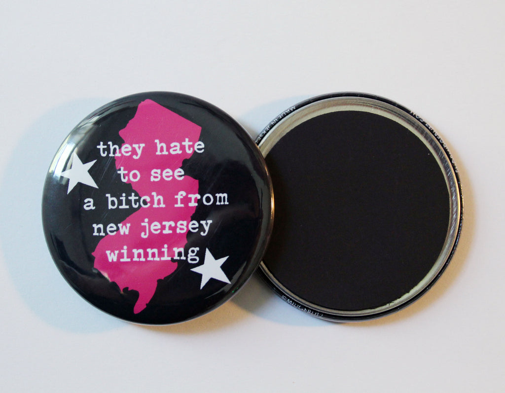 Measures 2.25 inches. Magnet affixed on back. High quality print for extra vibrancy.